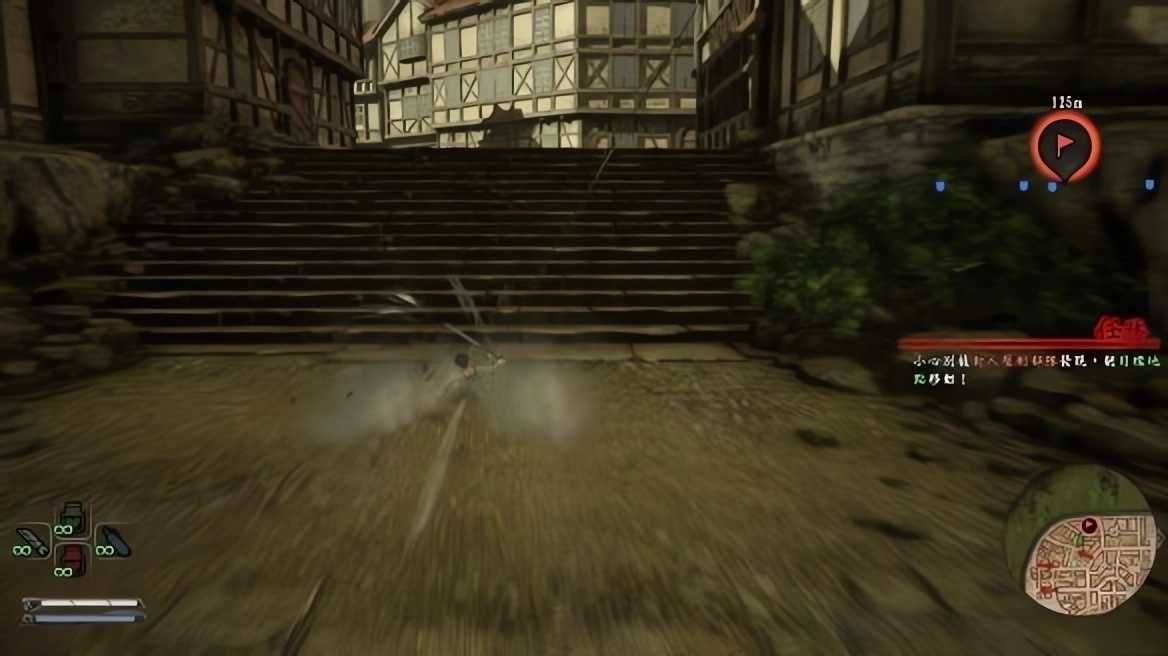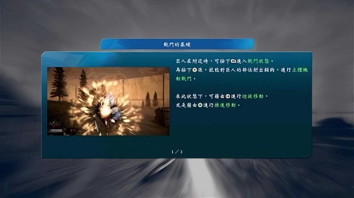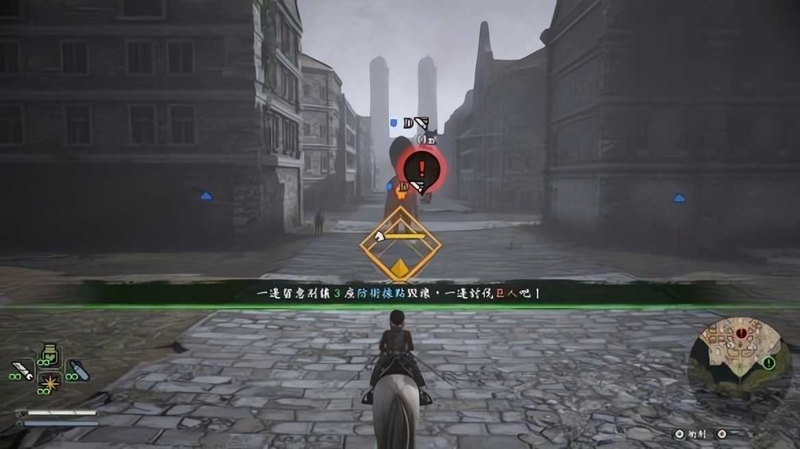 9、在被巨人攻击时按下Space将会施展回避动作,回避成功将绕至巨人身后展开一次威力强大的攻击。