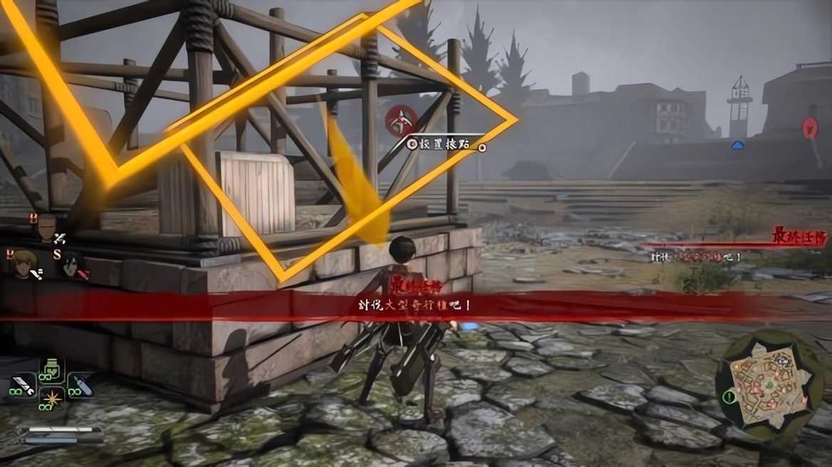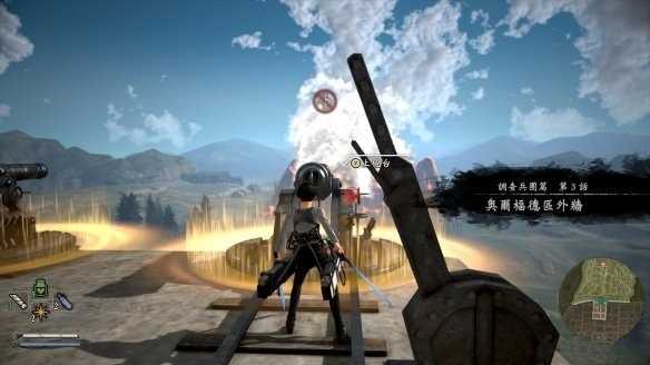 2、面对不断逼近的雷斯兵团打算试图用炮击阻止他。此时操控利威尔前往墙上的任意一个炮台对雷斯进行攻击。