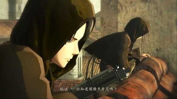 4、当然炮弹是无法阻止如此巨大的巨人,最终雷斯来到了城墙边。这时需要在规定时间内控制爱尔敏配合莎夏炸掉雷斯的双手。成功关键在于启动***的时机,注意左上角莎夏的动作,当看到她的炸药射出矛钩的瞬间我们也射出矛钩就能同时命中雷斯。