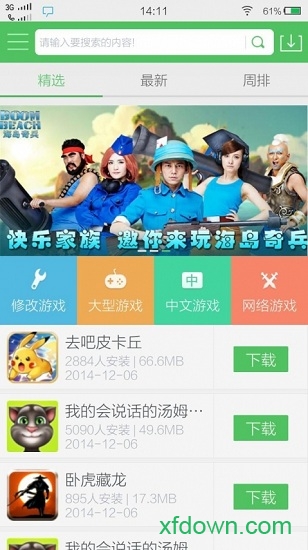 客户端内包含了大型游戏直接下载,并支持一键解压,无需任何操作自动帮你放好数据包!